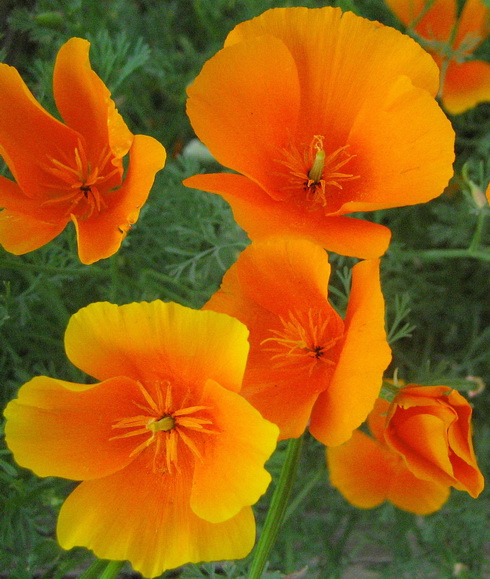 The eschscholtzia, or Californian poppy, is commonly seen bearing deep orange flowers with a yellow margin; but there are also white, pink and red varieties. Notable varieties are the white or alba; semi double o range or flore pleno; Mandarin , which is orange shaded red; Rose Queen; Ruby King; Rose Cardinal , a creamy rose; Mikado, crimson; Geisha, which is orange scarlet; and frilled pink. This showy annual is raised from seeds sown in the open in spring and autumn, and the seedlings thinned to about 9 in. apart. A light, friable soil and a sunny site are most suitable. In many gardens self-sown seedlings are numerous